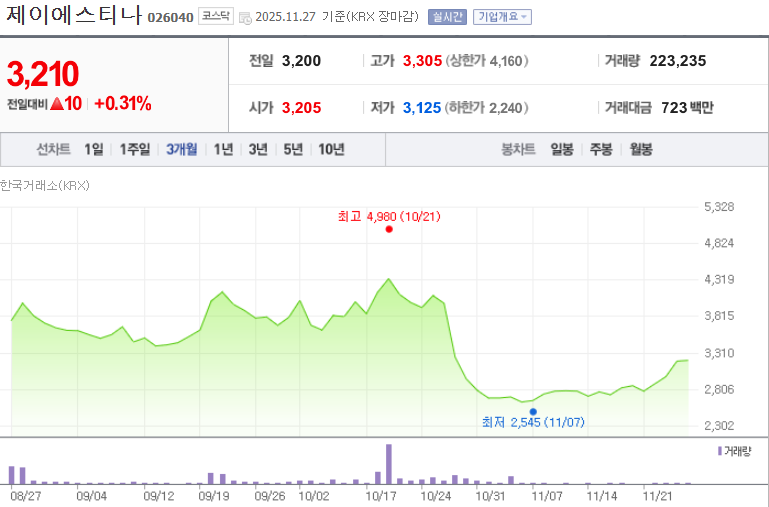 예를 들어, 제이에스티나 나 신원 처럼 본업 매출이 견고하거나 턴어라운드 가능성이 있는 기업은, 테마가 소멸하더라도 주가가 과도하게 하락하는 것을 막아주는 방어선 역할을 할 수 있습니다.