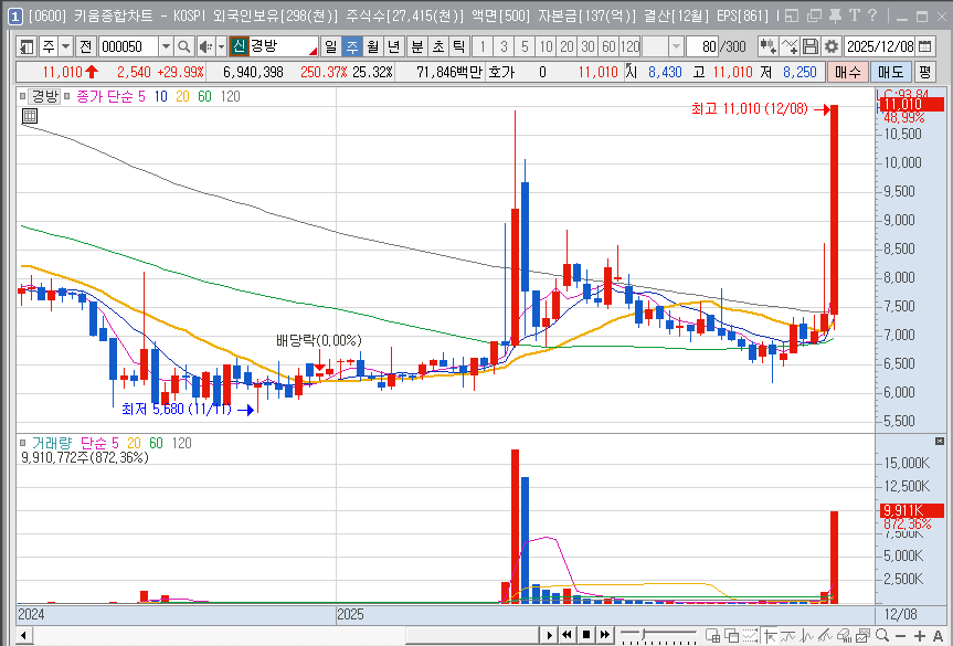 "아니, 경방 주가가 갑자기 왜 이렇게 폭발한 거예요?😮"