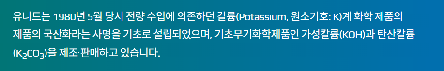 이산화탄소를 포집할 때 흡수제로 사용되는 것이 바로 탄산칼륨입니다. 유니드는 탄산칼륨 생산 분야에서 세계 최고의 경쟁력을 갖추고 있어, 글로벌 탄소 포집 플랜트 증설 시 가장 직접적인 수혜를 입는 소재 공급사 역할을 하게 됩니다.