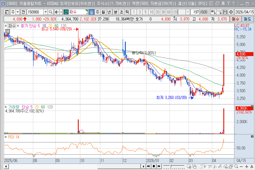 | 핵심 제품 | 데이터 보안 플랫폼, 기업용 sLLM 엘름, AI 보안 제품군 | 3,260원 부근의 강력한 지지선 확인 후 접근 |
