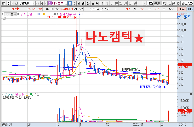 나노캠텍은 도전성 및 정전분산 소재 분야에서 독보적인 기술력을 보유한 기업으로, 최근 긴 하락 터널을 지나 바닥권에서 강력한 반등 신호를 보내고 있습니다. 2026년 2월 현재, 시장이 나노캠텍에 주목하는 이유는 주가가 역사적 저점 부근까지 충분한 조정을 거친 상태에서 첨단 신소재 산업의 회복세와 맞물려 기술적 반등 국면에 진입했기 때문입니다.