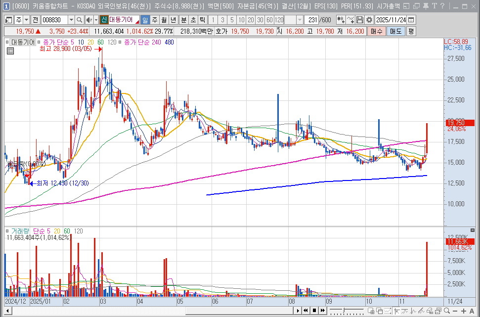 최근 시장에서 대동기어(008830) 는 단순한 농기계 부품주 이상의 기대를 받으며 급등락을 반복해왔습니다.
