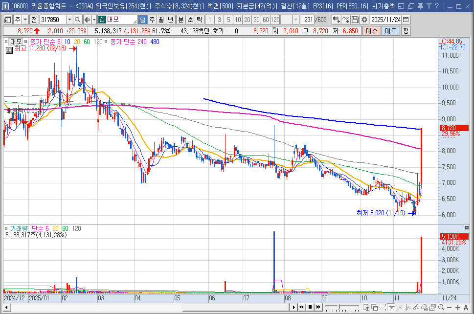 단순 기대감만으로 움직이는 테마주가 아니라, 실제로 지금이 대모 주가 매수 타이밍인 이유 4가지를 명확하게 찾았습니다.