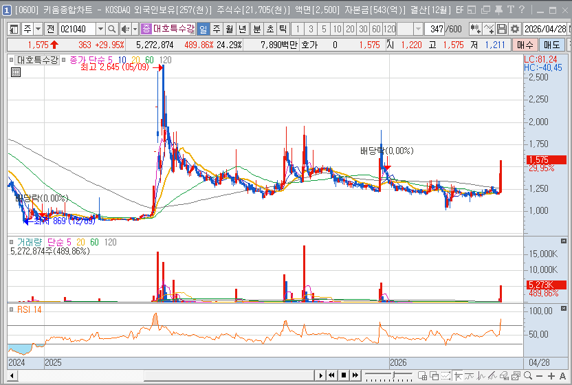 | 기술적 위치 | 수년간의 하락 추세 이후 바닥권에서 강력한 거래량 동반 반등 중 |