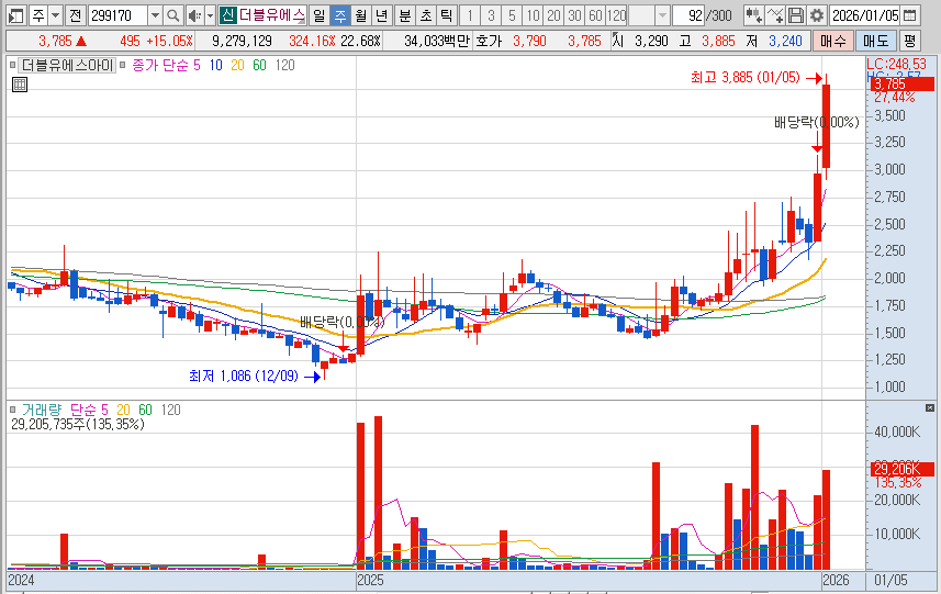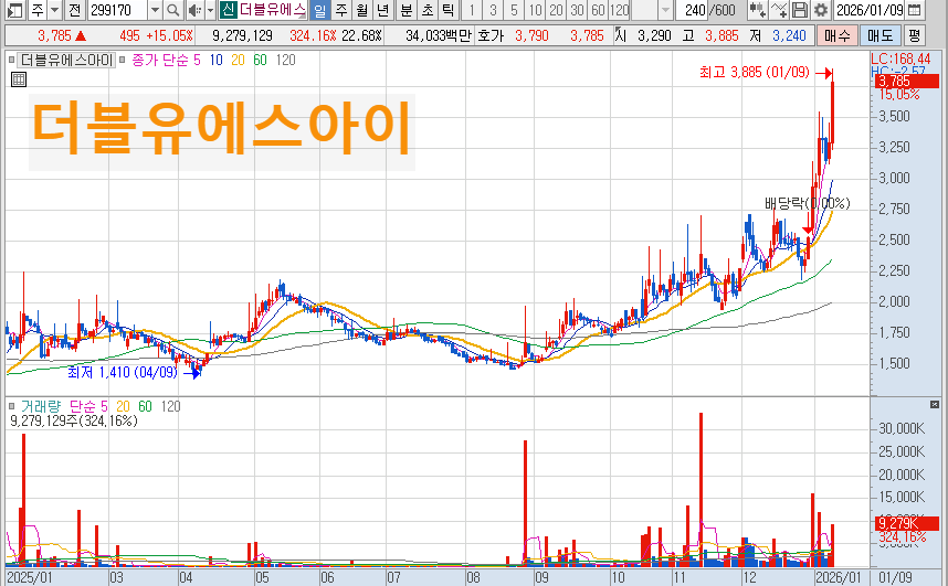 단기적인 관점에서 더블유에스아이는 실적 턴어라운드와 신사업 기대감이 맞물리며 긍정적인 흐름을 보이고 있습니다. 이동평균선이 정배열로 전환되는 골든 크로스 신호가 나타나는 등 기술적 분석 측면에서도 바닥을 다지고 상승 추세에 진입한 것으로 판단됩니다. 특히 2026년 의료 로봇의 본격적인 시장 진출과 인트로바이오파마의 신규 의약품 매출이 가시화되는 시점에는 기업 가치의 재평가가 강력하게 일어날 가능성이 높습니다.