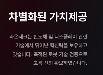 라온테크는 지속적인 연구개발(R&D) 투자를 통해 초고진공 및 극한 환경 대응 기술을 고도화하고 있으며, 이러한 기술적 우위는 진입 장벽이 높은 산업용 로봇 시장에서 라온테크만의 독점적 지위를 공고히 해줍니다.