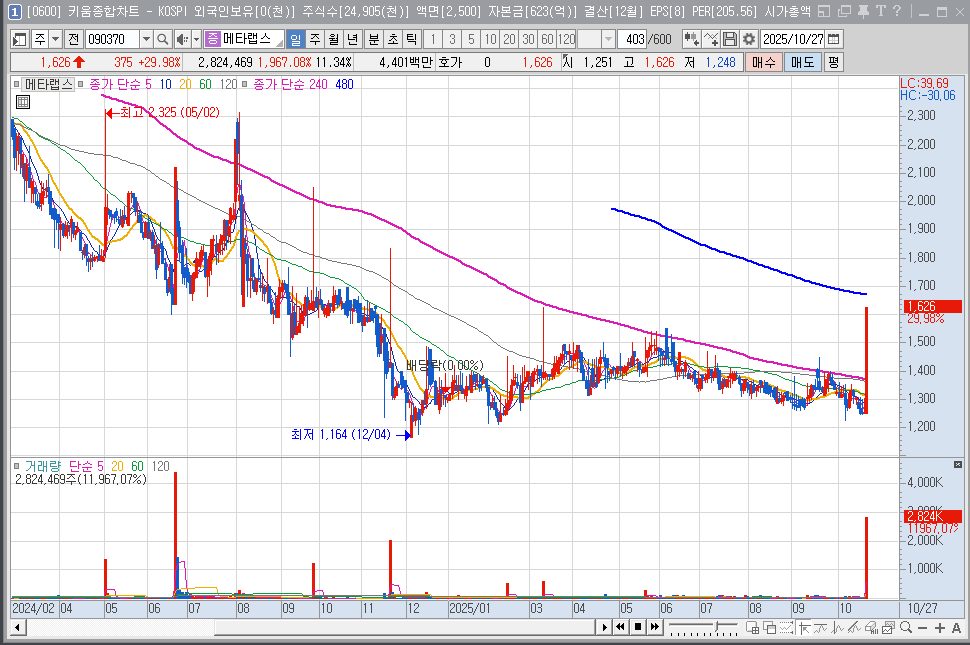 오늘 메타랩스 상한가 소식 듣고 깜짝 놀라신 분들 정말 많으시죠? 저도 장중에 HTS 보다가 눈을 비볐습니다.