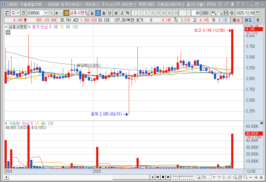삼표시멘트, 수급 쏠림 현상?