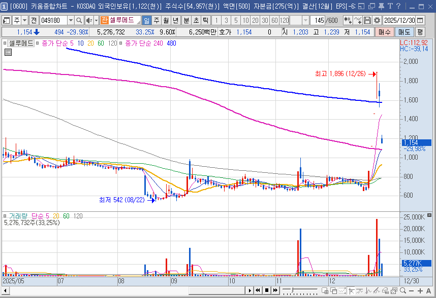 셀루메드 주가 하한가