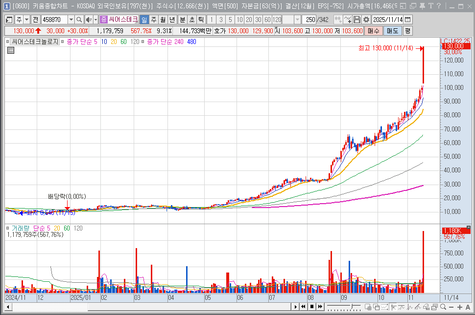 그중에서도 특히 씨어스테크놀로지 가 심상치 않은 움직임을 보이면서