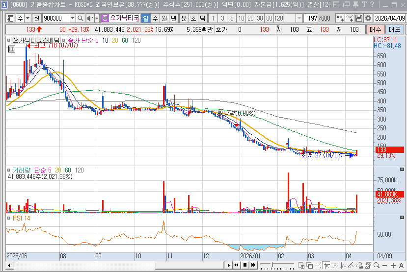 결론적으로 오가닉티코스메틱은 2026년 상반기를 기점으로 기업의 생존을 건 대대적인 체질 개선에 돌입했습니다. 주식 병합을 통한 주가 안정화 의지가 확고하고, 신규 자금을 활용한 원재료 공급망 확보가 실적 개선으로 이어진다면 현재의 저평가 국면을 탈출할 가능성이 높습니다. 특히 중국 내 '궈차오(애국 소비)' 열풍과 유기농 화장품 시장의 성장세가 맞물린다면, 소외되었던 차이나 섹터 내에서 의외의 복병으로 떠오를 수 있습니다.