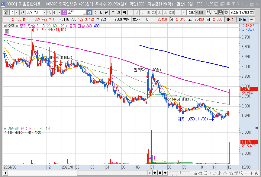 오텍 의 이번 급등은 '단기 모멘텀'과 '경영 정상화 기대'가 혼재된 결과입니다.