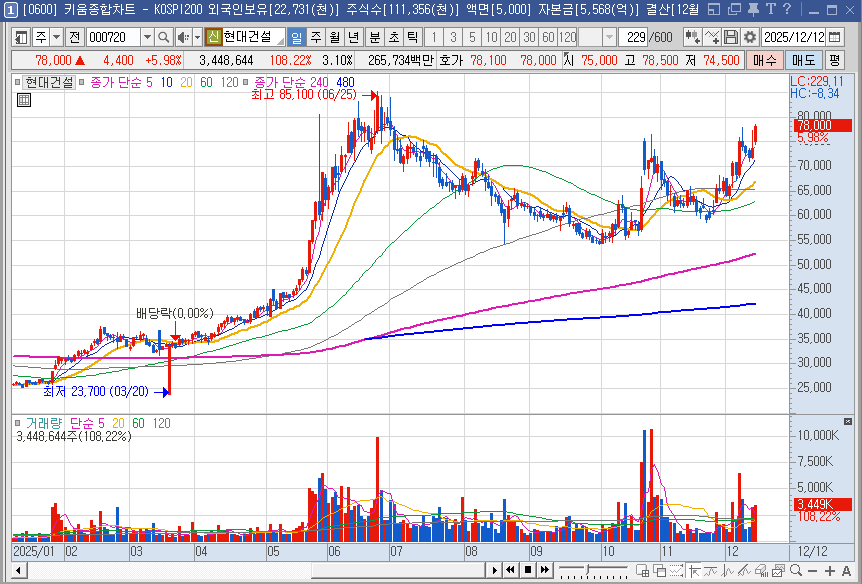 이 때문에 테마(자산주, 밸류업 등)에 엮여 매수세가 한 번 들어오기 시작하면, 적은 거래량으로도 주가가 쉽게 상한가 를 기록하는 등 폭발적인 변동성을 보입니다.