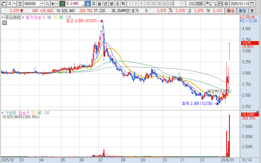 자동차 부품 전문 기업인 우수AMS가 오늘 장중 상한가에 안착하며 시장의 뜨거운 관심을 받고 있습니다.