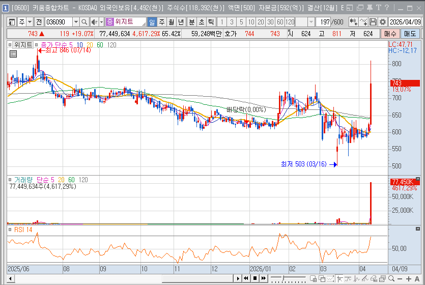 종합적인 관점에서 위지트는 2026년을 기점으로 완연한 주가 레벨업 단계에 들어섰습니다. 과거 적자를 기록하던 시기와 달리 현재는 연간 200억 원 이상의 영업이익을 창출하는 '돈 버는 기업'으로 변모했습니다. 반도체 업황의 회복세와 가상자산 시장의 제도권 안착이 동시에 진행되는 2026년 하반기까지는 계단식 상승 흐름이 지속될 가능성이 매우 높습니다. 특히 800원선 이상의 매물대를 안정적으로 돌파할 경우, 전고점을 향한 추가 랠리도 기대해 볼 수 있습니다.