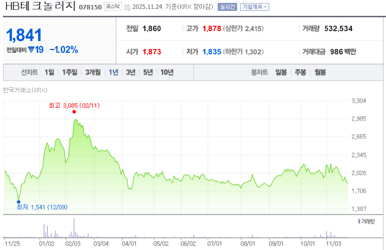 | HB테크놀러지 | 검사 장비 / 2차전지 겸업 | TGV 검사 장비 개발 완료, 포트폴리오 다각화 | 안정적인 기반의 잠재적 성장주 |