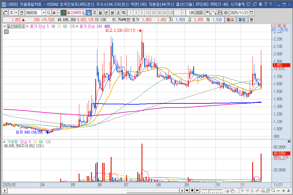 여기에 더해 정부의 백신 자급화 정책과 AI 신약 개발 트렌드까지 맞물리면서, 일신바이오는 단순한 장비 회사가 아닌 'K-바이오의 성장과 함께할 인프라 대장주' 로 자리매김하고 있습니다.