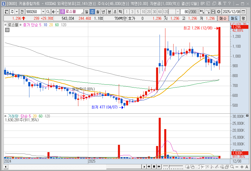 로스웰의 최대주주 트릴리언럭 그룹이 공개매수 계획을 공시하면서 주가가 급등했습니다.