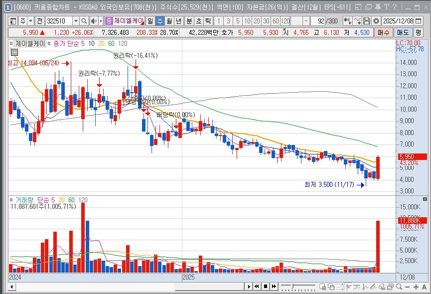 단기적으로는 수급 변동성을 주의해야 하지만, 중장기적으로 제이엘케이는 기술력 기반의 '구독형 서비스 플랫폼'으로서의 가치를 인정받으며 안정적인 성장 궤도에 진입할 가능성이 높습니다.