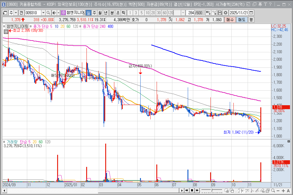 지금 참엔지니어링은 잠재적인 대규모 투자 발표 직전의 '숨고르기' 국면 일 수 있습니다.