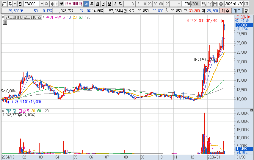 켄코아에어로스페이스는 한국 시장에서 대표적인 우주·항공 산업 부품주로 분류돼요.