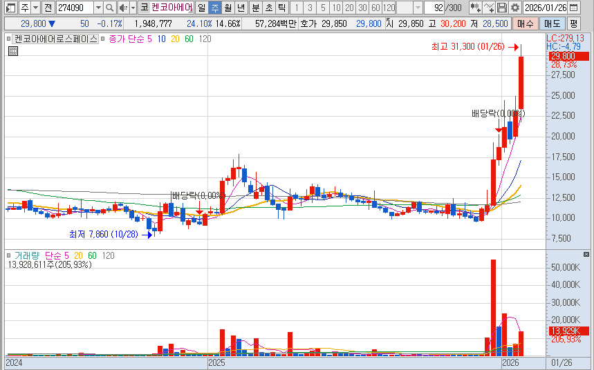 국내 정책적 수혜 또한 무시할 수 없는 상승 재료입니다. 우주항공청 개청 이후 민간 주도의 우주 개발(New Space) 시대가 열리면서, 정부의 대규모 R&D 과제 및 프로젝트가 켄코아에어로스페이스와 같은 검증된 민간 기업으로 집중되고 있습니다. 한국형 발사체 및 위성 사업에서의 역할 확대는 주가 밸류에이션 상향의 핵심 트리거로 작용할 전망입니다.