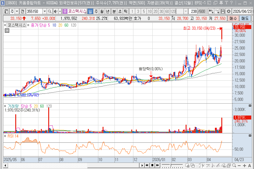 주가를 견인하는 핵심 상승 재료는 글로벌 반도체 기업과 체결한 약 594억 원 규모의 방열 스페이서 장기 공급 계약입니다. 이는 코스텍시스 시가총액의 절반을 넘어서는 대규모 수주로, 2025년 하반기부터 시작된 양산 물량이 2026년 본궤도에 오르면서 매출액이 전년 대비 170% 이상 급증할 것으로 관측되고 있습니다. 기존의 통신용 RF 패키지에 국한되었던 매출 구조가 AI 데이터센터 및 전기차용 전력 반도체 스페이서로 다변화되면서 수익성 개선 속도가 시장의 예상치를 훨씬 상회하고 있다는 점이 투자 매력도를 높이는 핵심 포인트입니다.