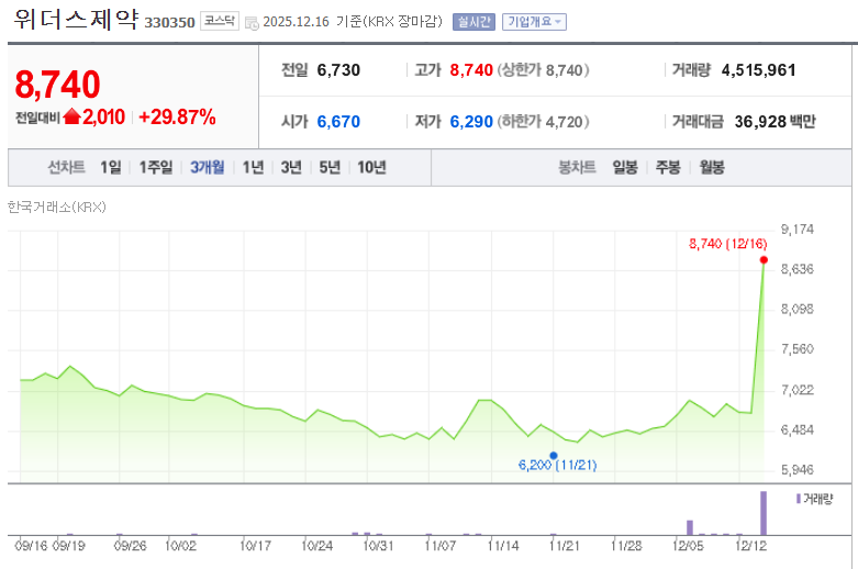 | 위더스제약 | 탈모 치료제 위탁생산(CMO), 제네릭 보유 | 대형 제약사와의 협력 및 생산능력 부각 |
