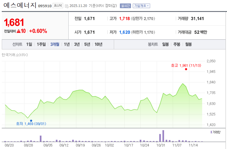 • 핵심 경쟁력: 태양광 모듈 제조 외에 클린룸 공조 (반도체/배터리 수혜) 및 ESS(에너지 저장장치) 사업을 함께 영위하여 안정적인 실적 기반 확보.
