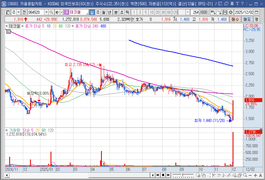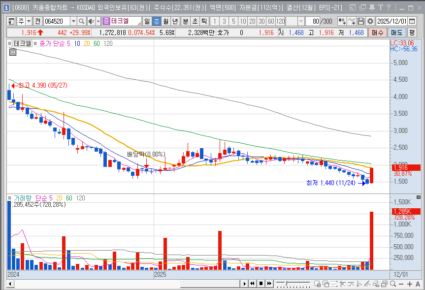 오늘은 테크엘의 숨겨진 호재 재료 후보들과 현재의 수급 동향을 철저히 분석하여, 과연 이 종목을 지금 매수해도 될지, 어떻게 대응해야 할지에 대해 제시해 드릴게요!