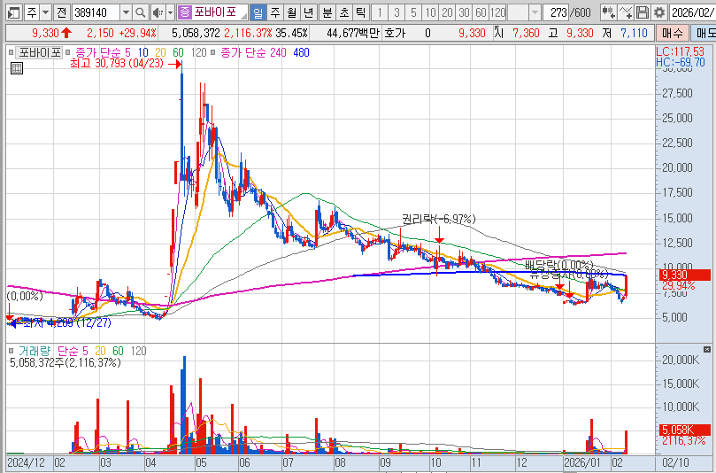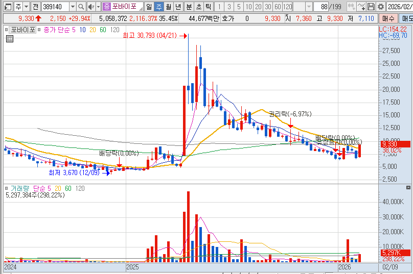 – 포바이포는 퓨리오사AI와 협력 관계가 있거나 관련 솔루션을 함께 개발하는 기업로 시장에서 분류돼, 이 테마가 강해지면서 수급유입이 집중된 것으로 보여짐.