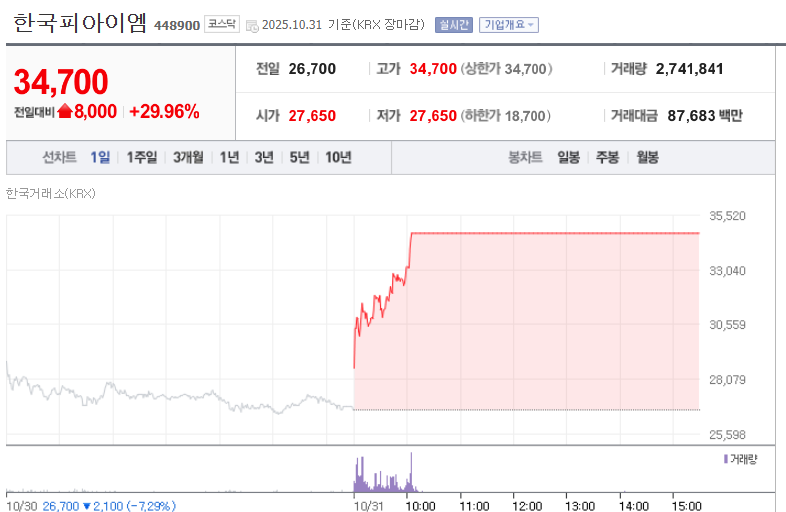 한국피아이엠 이 최고가를 경신하며 상한가 를 친 배경에는 단순한 수급 이슈를 넘어선 강력한 모멘텀이 숨어 있습니다. 특히 최근 뉴스를 보면, 기업이 미래 성장 동력을 확실히 잡았다는 인상을 줍니다.