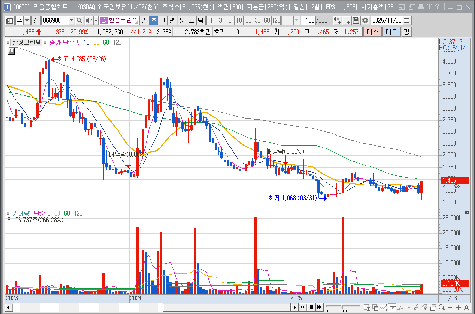 즉, 한성크린텍은 반도체 장비주 의 성격뿐 아니라, AI/HBM 확대 라는 거대한 흐름의 숨겨진 수혜주 로 자리매김하고 있다고 봐야 합니다.