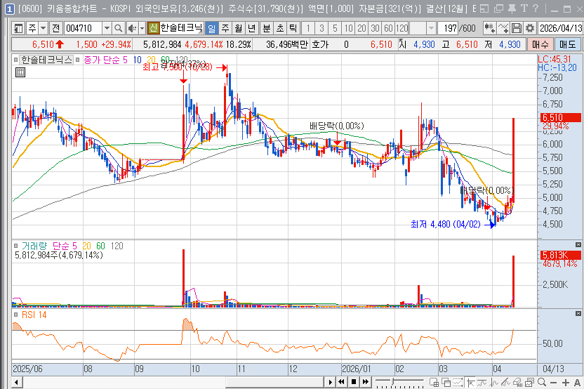한솔테크닉스는 과거 LCD 부품에 편중되었던 사업 구조를 스마트폰, 태양광, 그리고 이제는 반도체 후공정까지 확장하는 데 성공했습니다. 이러한 다변화는 특정 산업의 경기 사이클에 휘둘리지 않는 기초 체력을 만들어주었습니다. 특히 자회사인 한솔아이원스가 반도체 세정 및 코팅 분야에서 자리를 잡은 상태에서 윌테크놀러지까지 가세함에 따라, 한솔그룹 내 반도체 벨류체인이 완성되었다는 점에 주목해야 합니다. 이러한 수직 계열화는 고객사와의 협상력을 높이고 제조 원가를 절감하는 시너지를 창출할 것입니다. 현재의 주가 수준은 신사업의 가치가 충분히 반영되지 않은 저평가 국면으로 보이며, 반도체 업황의 회복과 맞물려 기관 투자자들의 포트폴리오 편입 비중이 높아질 가능성이 큽니다. 기술과 자본이 결합된 이번 승부수가 한솔테크닉스의 주가를 새로운 레벨로 끌어올릴 촉매제가 될 것입니다.