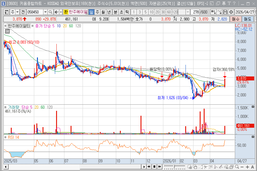 한주에이알티 핵심 지표 요약