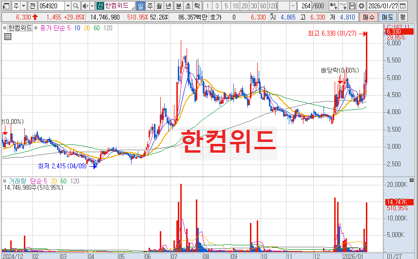 | 수급 특징 | 상한가 이후 거래량 폭발, 정책주로서의 강한 탄력성 보유 |