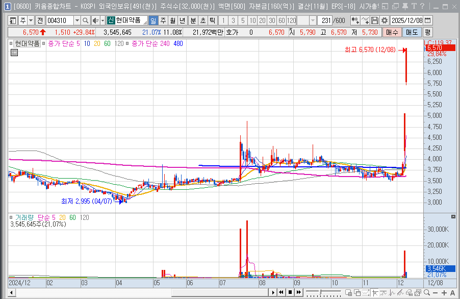 🚨 현대약품 주가 2연상 상한가 기대 재료 분석