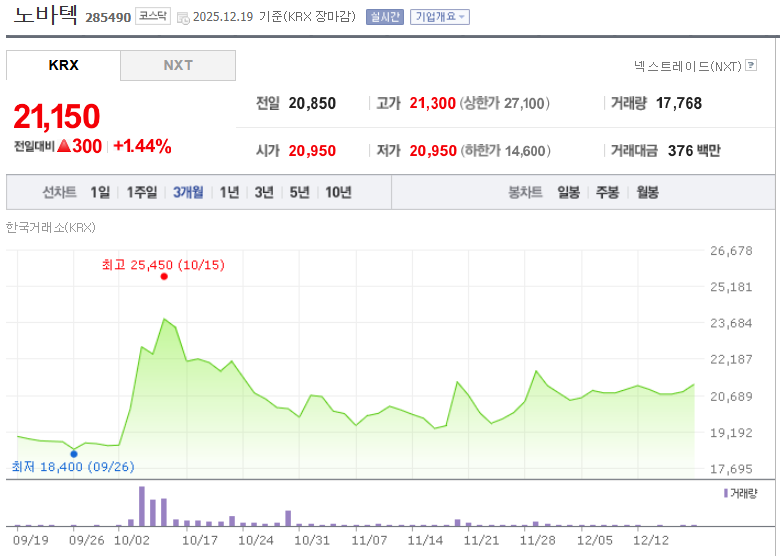• 분석: 다른 종목들이 단순 테마로 움직일 때, 노바텍은 영구자석 응용 제품을 실제로 삼성전자 등에 납품하며 실적을 내는 기업입니다. 주가 역시 상대적으로 하방 경직성이 강합니다.