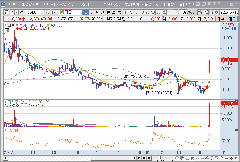 향후 주가 전망은 2026년 초반의 가격 조정을 마무리하고 6,000원대 중반 이상의 안착을 시도하는 완만한 우상향 흐름이 예상됩니다. 2026년 4월 현재, 기술적 지표들이 바닥권을 확인하고 반등을 준비하는 구간에 있어 장기적인 관점에서의 매수 매력도가 매우 높은 시점입니다. 하지만 투자 시 경계해야 할 요소로는 신규 사업 부문의 실제 매출 기여 속도가 시장의 기대치보다 늦어질 가능성입니다.