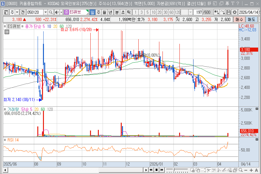 특히 최근 아웃도어 시장이 단순 등산을 넘어 캠핑, 차박 등으로 확장되면서 OEM/ODM 수주 환경이 점진적으로 개선될 조짐을 보이고 있습니다. 2026년 1월 이후 주가는 이동평균선 상단에 안착하며 상승 전환을 시도하고 있으며, 거래량이 실린 양봉이 출현할 때마다 상방으로의 에너지가 응축되고 있습니다. 자산 가치 재평가와 본업의 턴어라운드 기대감이 맞물리는 지금이 기술적 반등 이상의 흐름을 기대해 볼 수 있는 시점입니다.
