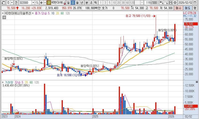 이 흐름 속에서 HD현대솔루션에너지도 주가 상승 모멘텀을 받음.