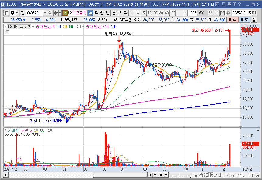 LS마린솔루션의 최근 주가 급등은 시장 전반의 풍력에너지 테마 강세 속에서 나왔습니다. 12월 12일, 풍력 관련주들이 동반 상승하는 흐름 속에서 이 기업은 특히 큰 폭의 상승률 을 기록했습니다.