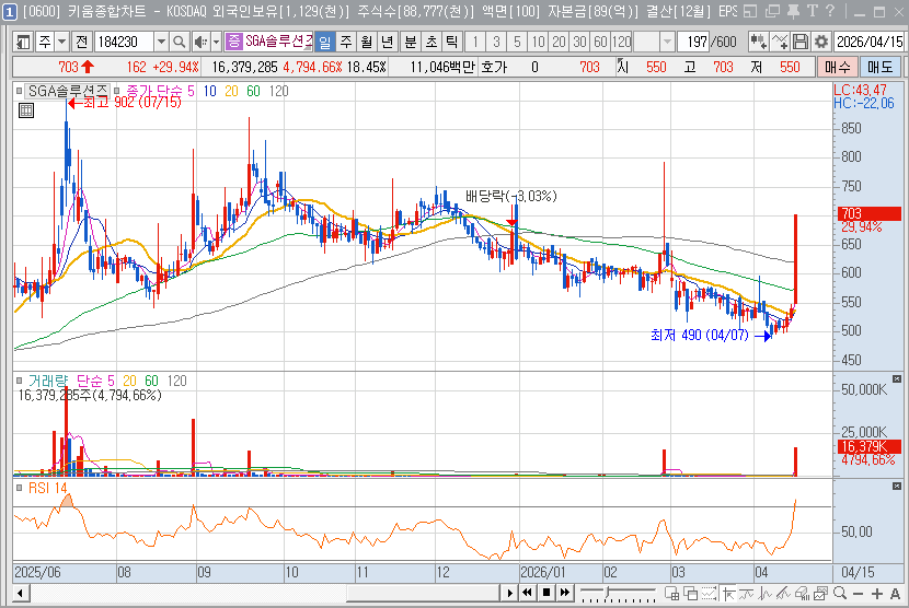 실적 호조와 더불어 SGA솔루션즈는 거래 편의성 향상과 주가 안정화를 위해 액면가를 100원에서 500원으로 변경하는 주식 병합을 추진하고 있습니다. 이는 유통 주식 수를 적정화하여 저가주 이미지를 탈피하고, 기관 및 외국인 투자자들이 보다 원활하게 진입할 수 있는 환경을 조성하기 위한 전략적 선택입니다. 자본 구조의 효율화를 통해 주당 가치를 높이겠다는 경영진의 의지는 시장에서 긍정적인 신호로 받아들여지고 있습니다.