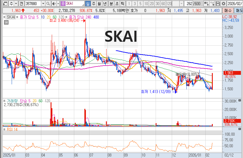 SKAI는 데이터라는 원재료를 AI라는 완성품으로 가공하는 핵심 기술력을 보유한 기업입니다. 단기적인 수급 현황에 집중하기보다는 이들이 제시하는 AI 마케팅 솔루션이 얼마나 다양한 산업군으로 확산되는지 지켜보는 것이 중요합니다. 기술적 지지선이 확인되는 구간에서 분할 관점으로 접근하는 전략이 유효해 보입니다.